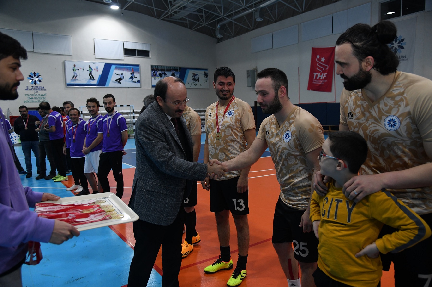 Müsabakaların ardından düzenlenen kupa töreninde konuşan Rektörümüz Prof. Dr. Bülent Çakmak, maçların centilmence tamamlandığını ifade ederek, turnuvaya katılan tüm takımları tebrik ettikten sonra 1.’lik kupasını Spor Bilimleri Fakültesi Takımıyla birlikte kaldırdı.