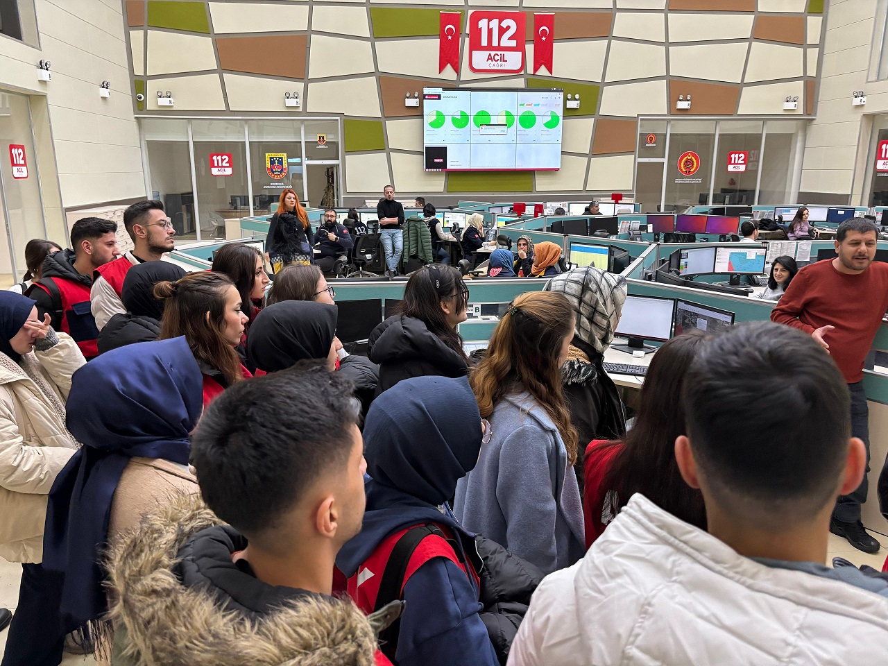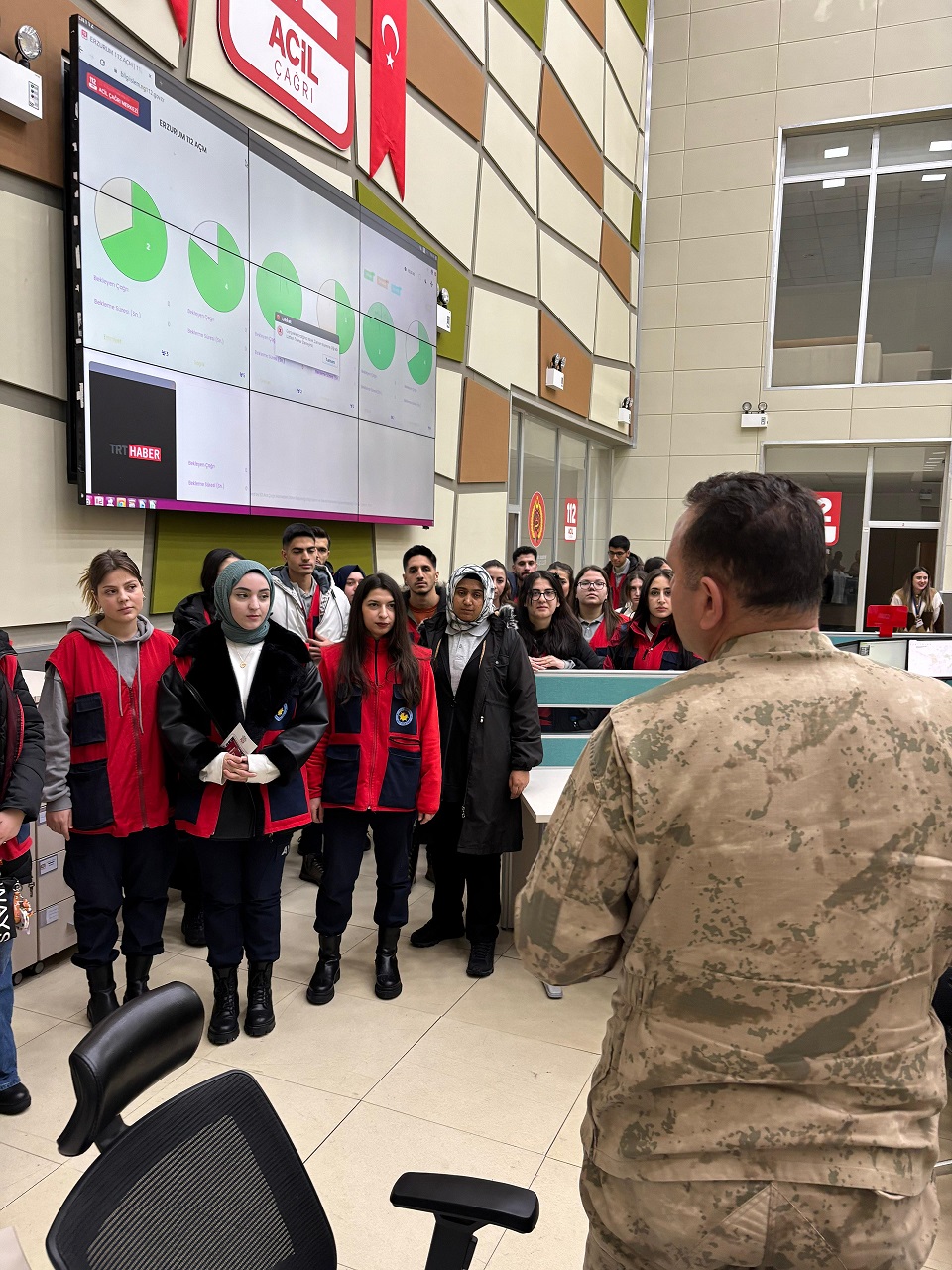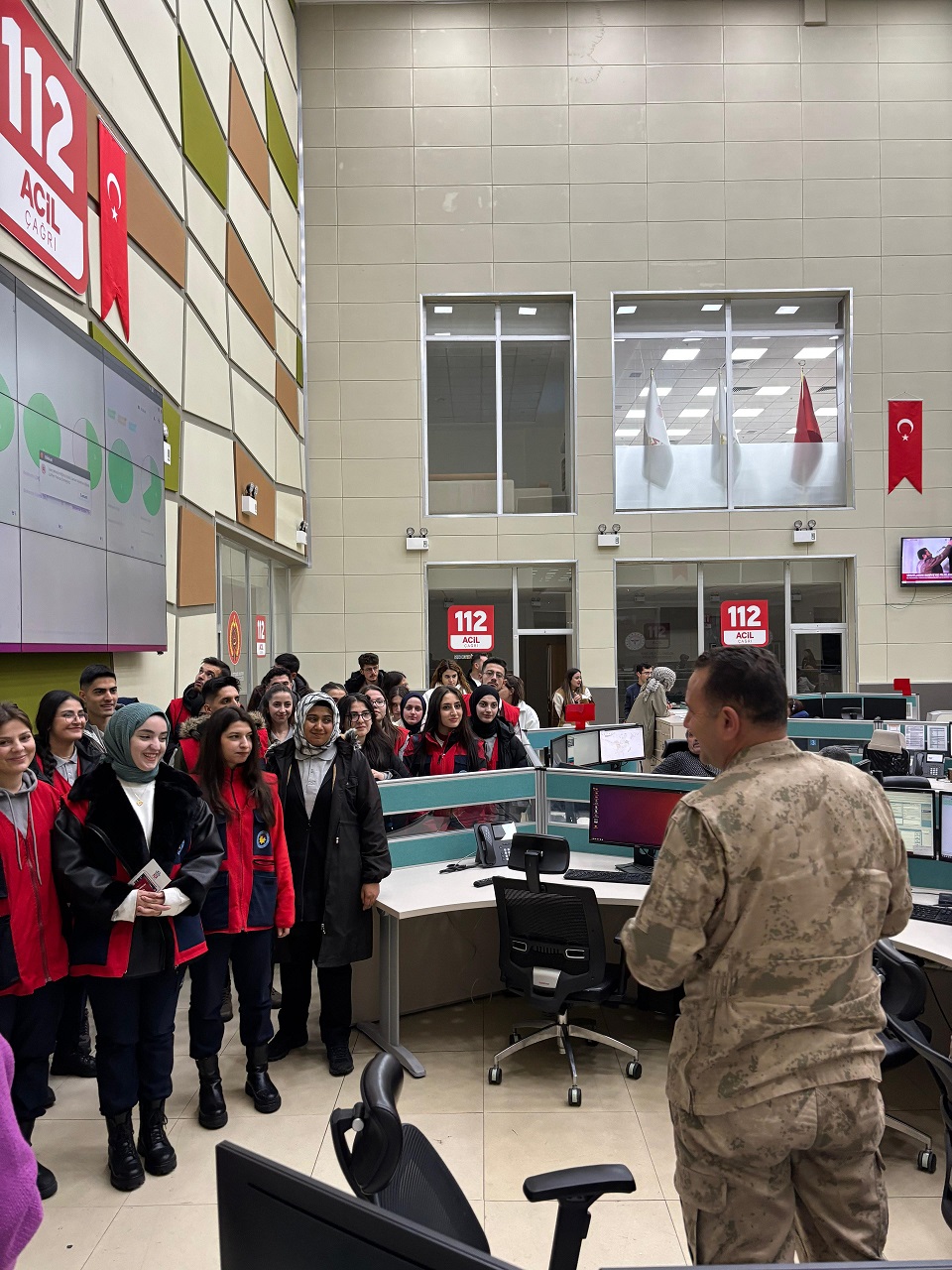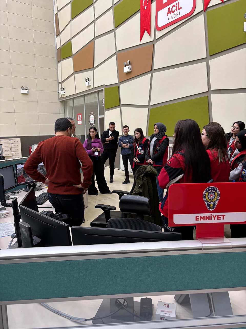 Ders kapsamında acil durumlar ve kriz yönetimiyle ilgili hizmet vermekte olan ve acil çağrı numaralarını tek merkezde toplayan 112 Acil Çağrı Merkezi Müdürlüklerinin çalışma usül ve esasları, bünyesinde hizmet veren kurumlar, elektronik ve teknik alt yapı ve kurumsal işleyişin tatbiki amacıyla öğrencilere 112 ziyareti yapıldı.