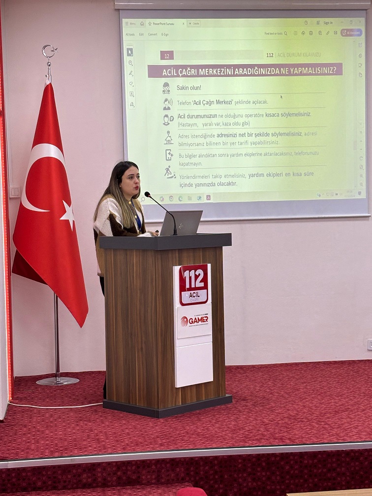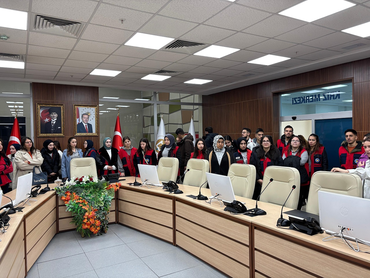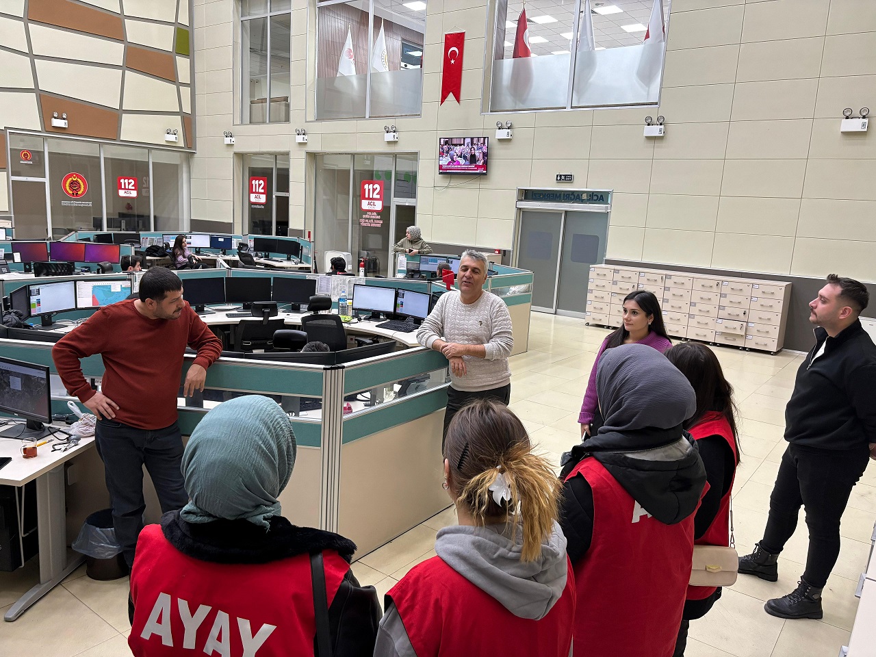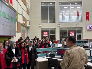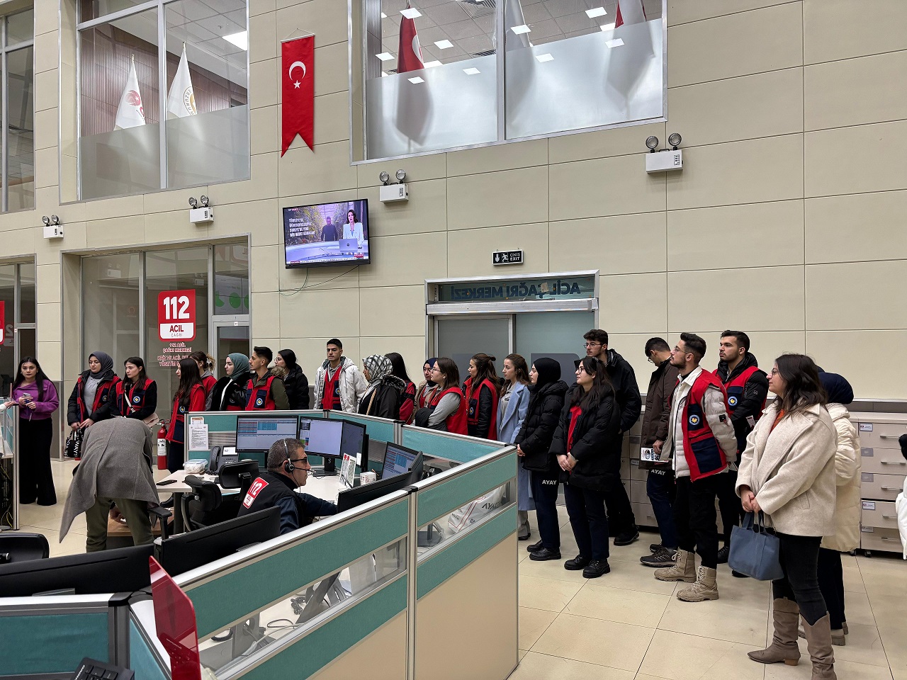 Ders kapsamında acil durumlar ve kriz yönetimiyle ilgili hizmet vermekte olan ve acil çağrı numaralarını tek merkezde toplayan 112 Acil Çağrı Merkezi Müdürlüklerinin çalışma usül ve esasları, bünyesinde hizmet veren kurumlar, elektronik ve teknik alt yapı ve kurumsal işleyişin tatbiki amacıyla öğrencilere 112 ziyareti yapıldı.