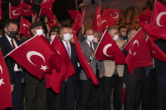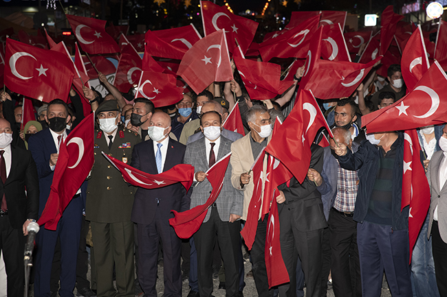 Demokrasi Nöbeti Etkinliği; tüm Türkiye’de saat 00.13’te eş zamanlı olarak selaların okunması ve 15 Temmuz’a ilişkin videolarla devam etti.