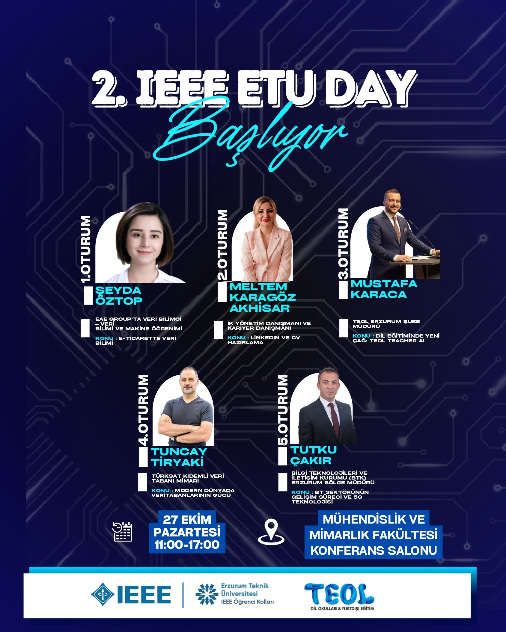 Bu özel günde; sektörün önde gelen mühendisleri, girişimcileri ve akademisyenleriyle bir araya gelecek, ilgi alanınıza göre seçebileceğiniz oturumlarda bilgi ve deneyim dolu bir gün geçireceksiniz. 💡