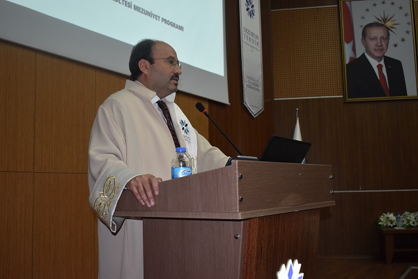 Törenin açılış konuşmasını yapan Dekan Prof. Dr. İncekara eğitim ve öğretimin tarihimiz içindeki önemini ve gençlerin bu önemli konumdaki yerlerini hatırlatarak, bu süreçte kendi rollerini üstlenmelerini istediler. Mezun olmanın bir öğrenci için başlangıç olması gerektiğini belirterek, daha iyi yerlere, iyi konumlara gelebilmek için ileriye dönük çabalarının devam etmesi gerektiğini söylediler.