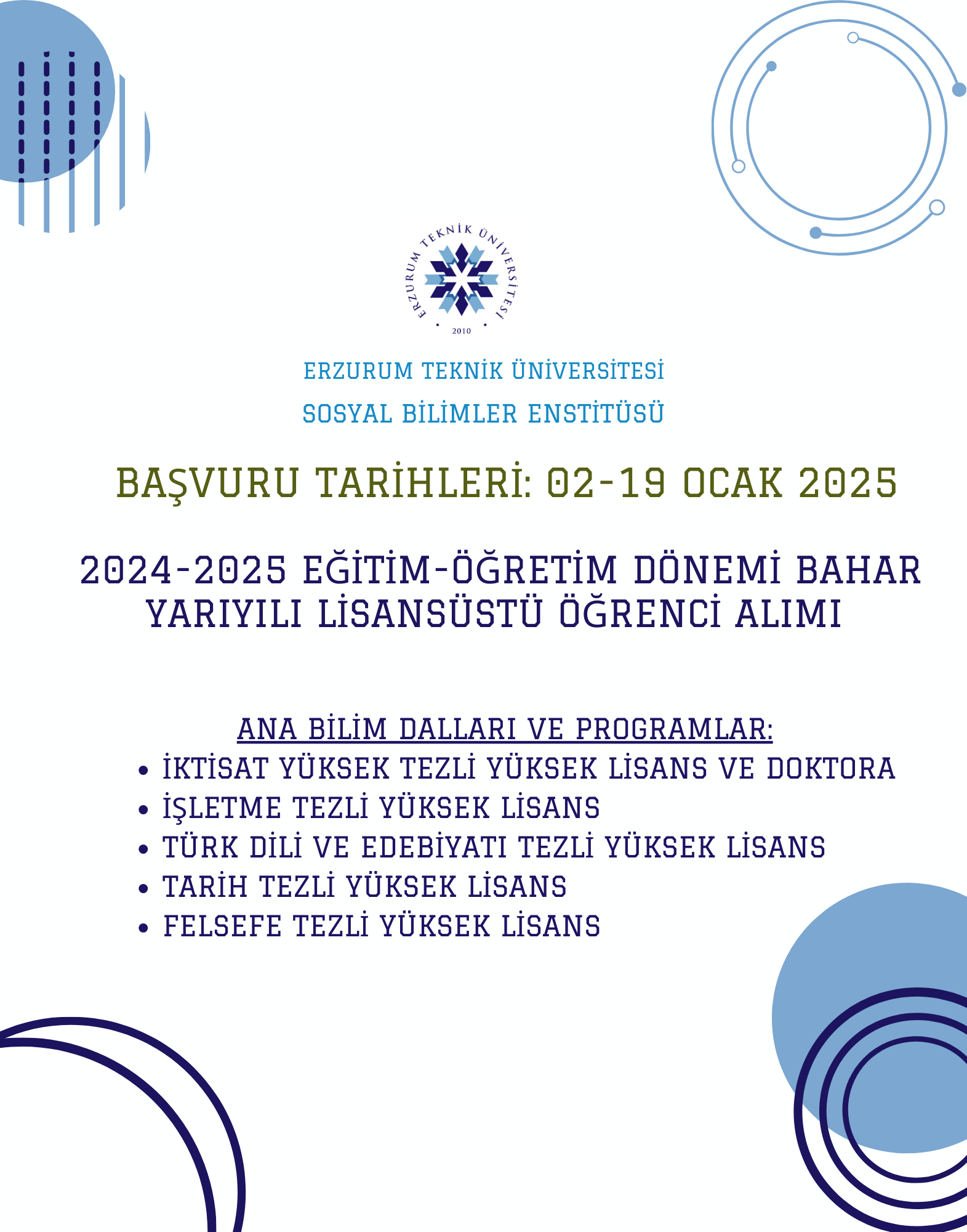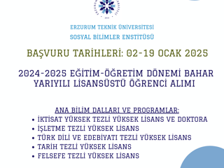 2024-2025 Eğitim-Öğretim Yılı Bahar Dönemi Lisansüstü Öğrenci Alımı