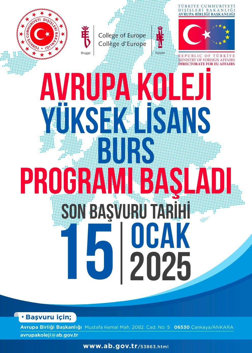 With the support of Turkish private sector, NGO’s and the Polish Ministry of Foreign Affairs, the Turkish Ministry of Foreign Affairs EU Directorate opened the applications for the College of Europe Postgraduate Scholarship Programme on 16 October 2024. The deadline for application is 15 January 2025.