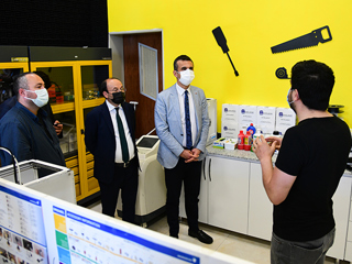Geçtiğimiz günlerde Sivas’ta bulunan ASELSAN Hassas Optik Merkezi’ne ziyarette bulunan ETÜ Rektörü Prof. Dr. Bülent Çakmak’a iade-i ziyarette bulunan Murat Şahin, ETÜ’de ve kentte çeşitli temaslarda bulundu. Bu kapsamda; ETÜ’de bulunan Yüksek Teknoloji ve Araştırma Merkezi (YÜTAM), Mucitpark ve ETÜ Kristal’i ziyaret eden heyete Rektör Bülent Çakmak, Rektör Yardımcıları Prof. Dr. Birol Soysal, Prof. Dr. İrfan Kaymaz, Genel Sekreter Doç. Dr. Tuba Yetim ile Mühendislik ve Mimarlık Fakültesi Dekanı Prof. Dr. Fatih Yetim eşlik etti.