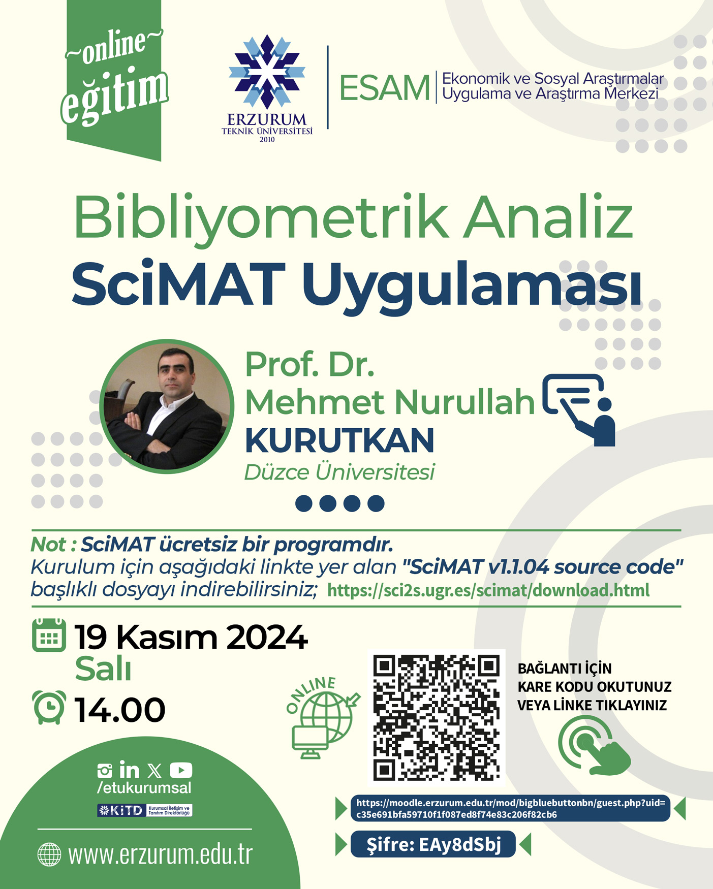 Bilimsel incelemelerde bibliyometrik analizlerin önemine dikkat çekmek ve SciMAT yazılımının etkin öğretimini sağlamak amacıyla özel bir eğitim düzenliyor.