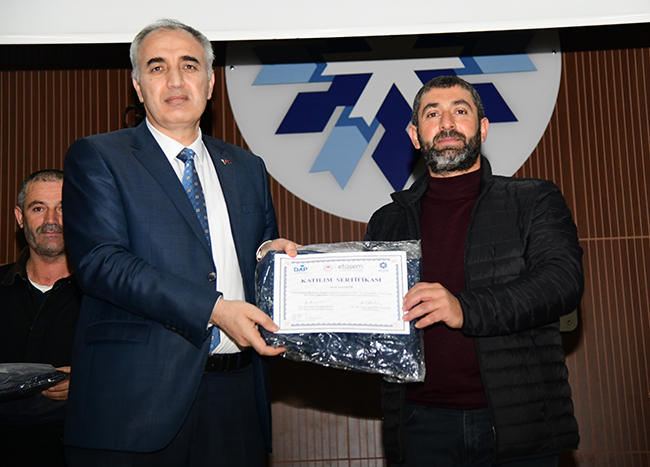 Erzurum, Erzincan, Elazığ, Iğdır ve Kars illerindeki 20 ilçede tarım ve hayvancılıkla geçimini sürdüren çiftçilerin farkındalık düzeyini artırmak ve daha verimli üretim yapmalarını sağlamak amacıyla Erzurum Teknik Üniversitesi Sürekli Uygulama ve Araştırma Merkezi (ETÜSEM) ile Doğu Anadolu Projesi (DAP) Bölge Kalkınma İdaresi Başkanlığı iş birliği ile “Modern Hayvancılık Teknikleri” ve “İyi Tarım Uygulamaları” eğitimleri verildi. Eğitimi başarıyla tamamlayan çiftçiler için Prof. Dr. Muammer Yaylalı Konferans Salonunda sertifika töreni düzenlendi.