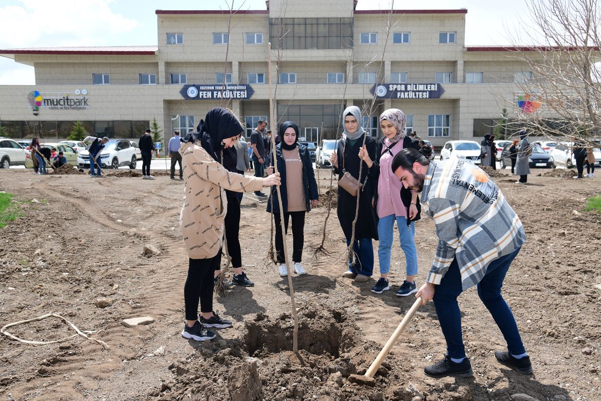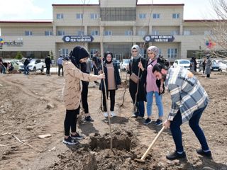 Daha yeşil bir kampüs için Fakültemiz binası etrafında ki yeşil alanlarda meyve fidanları toprakla buluşturuldu.