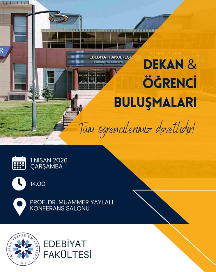 01 Nisan 2026 Çarşamba günü saat 14.00'te Prof. Dr. Muammer Yaylalı Konferans Salonu'ndaki Dekan-Öğrenci Buluşması'na tüm öğrencilerimiz davetlidir.