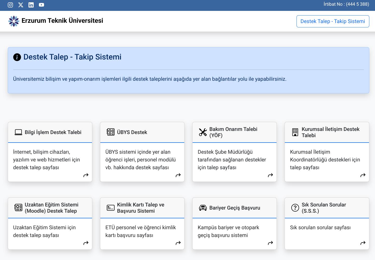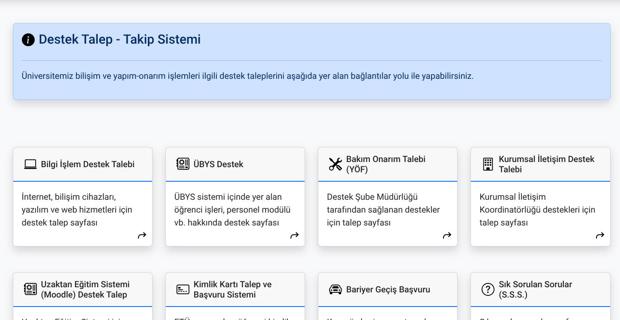 Personel ve öğrenciler, destek taleplerini oluşturmak ve mevcut başvurularını takip etmek için aşağıdaki adresi kullanabilir: