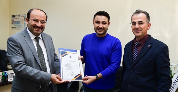 "Doçentlik Ünvanı" almaya hak kazanan Fakültemiz Temel Bilimler Bölümü öğretim Üyesi Doç. Dr. Bünyamin ÖZGERİŞ ile Moleküler Biyoloji ve Genetik Bölümü öğretim üyesi Doç. Dr. İsmail BEZİRGANOĞLU adına Üniversitemiz Meyve bahçesinde meyve ağacı dikilmiş olup sertifikaları Rektörümüz Prof. Dr. Bülent ÇAKMAK tarafından kendilerine takdim edilmiştir.