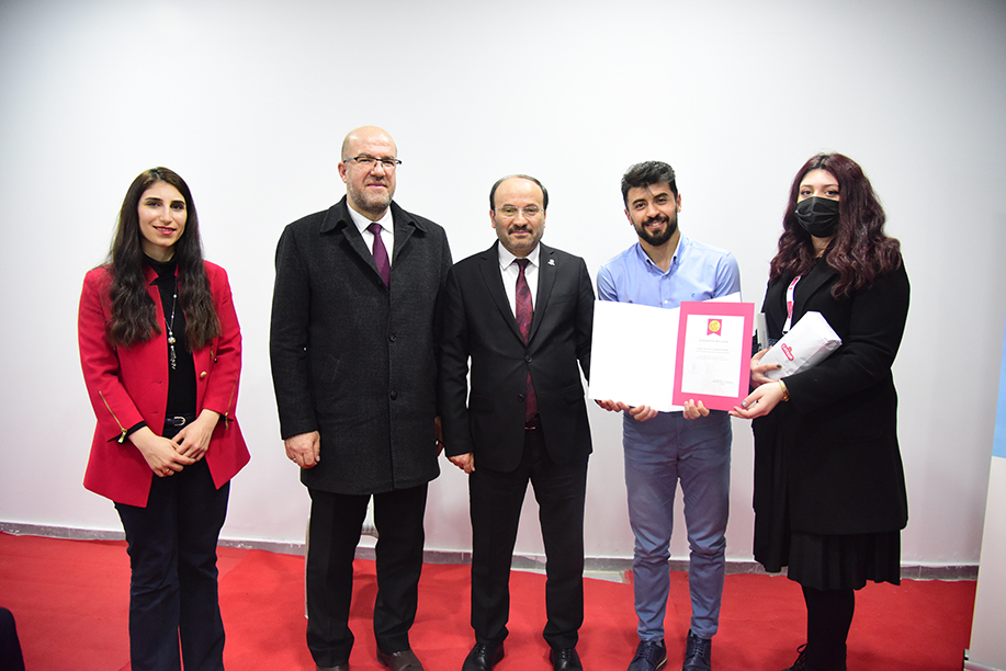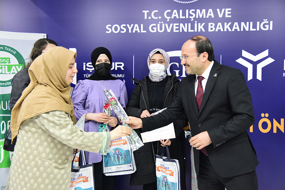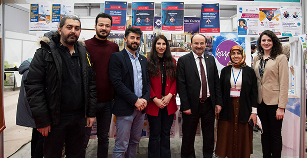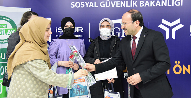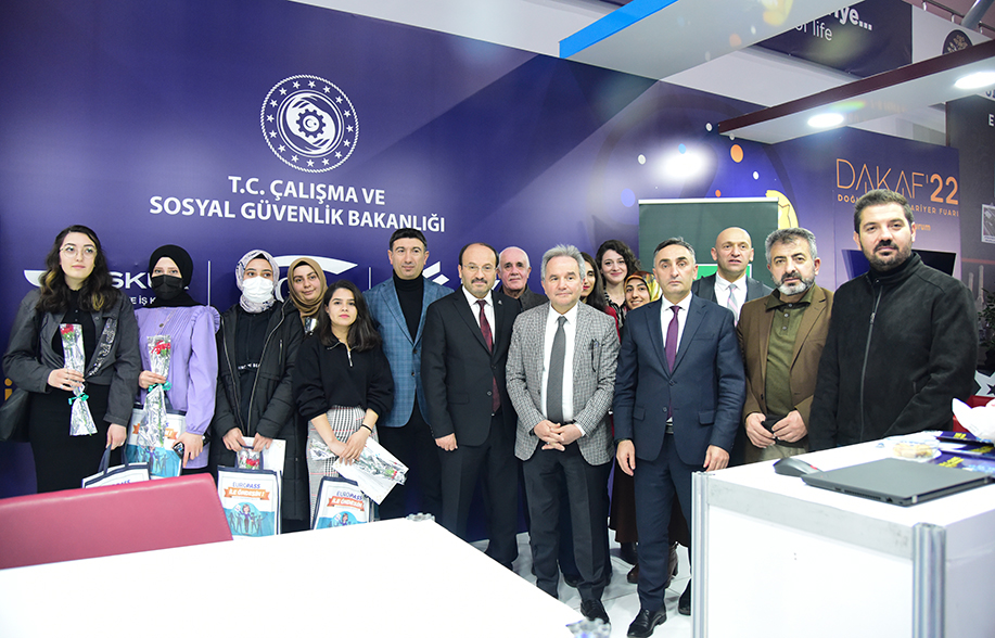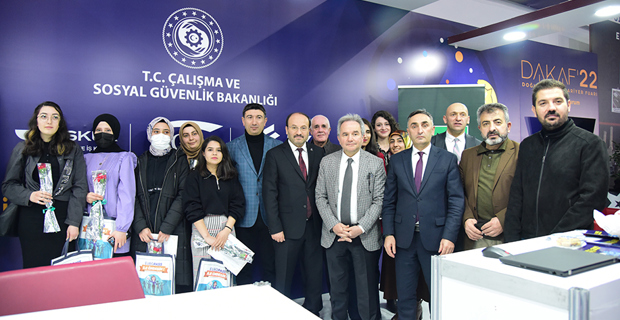 Üniversite-kamu-sanayi iş birlikleri için fuara katılan birçok kamu kurumu ve özel şirket temsilcisiyle temasta bulunan Rektör Çakmak, fuarın son günün 8 Mart Dünya Kadınlar Gününe denk gelmesi nedeniyle Çalışma ve Sosyal Güvenlik Bakanlığı standa bulunan kadın çalışanlara çiçek taktim etti.