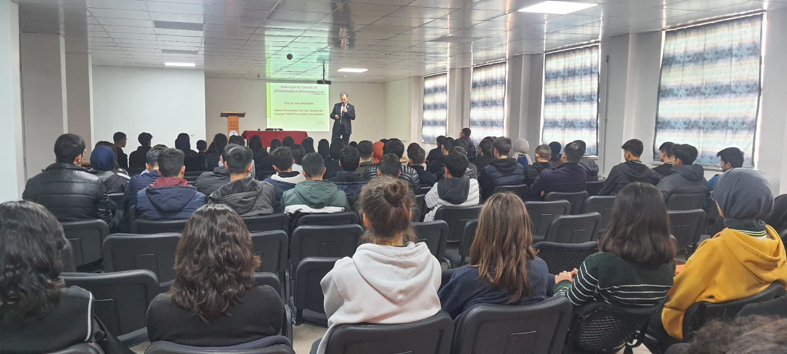 Dean of our Faculty Prof. Dr Ümit İNCEKARA gave a seminar to Oltu Science High School students on "BIOPIRACY IN THE WORLD AND TURKEY". Additionally, the 1st Erzurum Science High Schools Symposium was introduced.