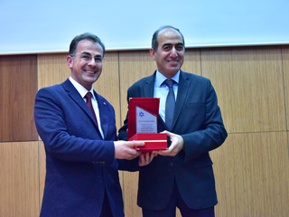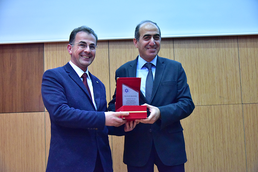 Konferans sonunda Fen Fakültesi Dekanı Prof. Dr. Ümit İNCEKARA Rektör Yardımcısı Prof. Dr. İrfan KAYMAZA konuşmalarından dolayı teşekkür ederek plaket takdim etti.