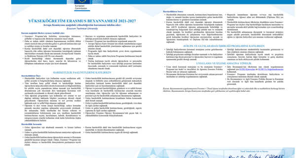ETÜ Erasmus Koordinatörlüğü tarafından Mayıs 2020’de Avrupa Komisyonuna yapılan ‘Erasmus Charter for Higher Education – ECHE’ (Yükseköğretim Erasmus Beyannamesi) başvurusu Avrupa Komisyonunda görevli bağımsız uzmanlar tarafından değerlendirilmiş ve değerlendirme sonucunda 100 tam puan alarak 2021-2027 dönemi için Üniversitemiz ECHE Akreditasyonuna sahip olmaya hak kazanmıştır.