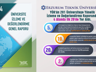 Erzurum Teknik Üniversitesi (ETÜ) Yükseköğretim Kurulu (YÖK) tarafından hazırlanan “Üniversite İzleme ve Değerlendirme Genel Raporu’nda 4 alanda ilk 20 ye girmeyi başardı.