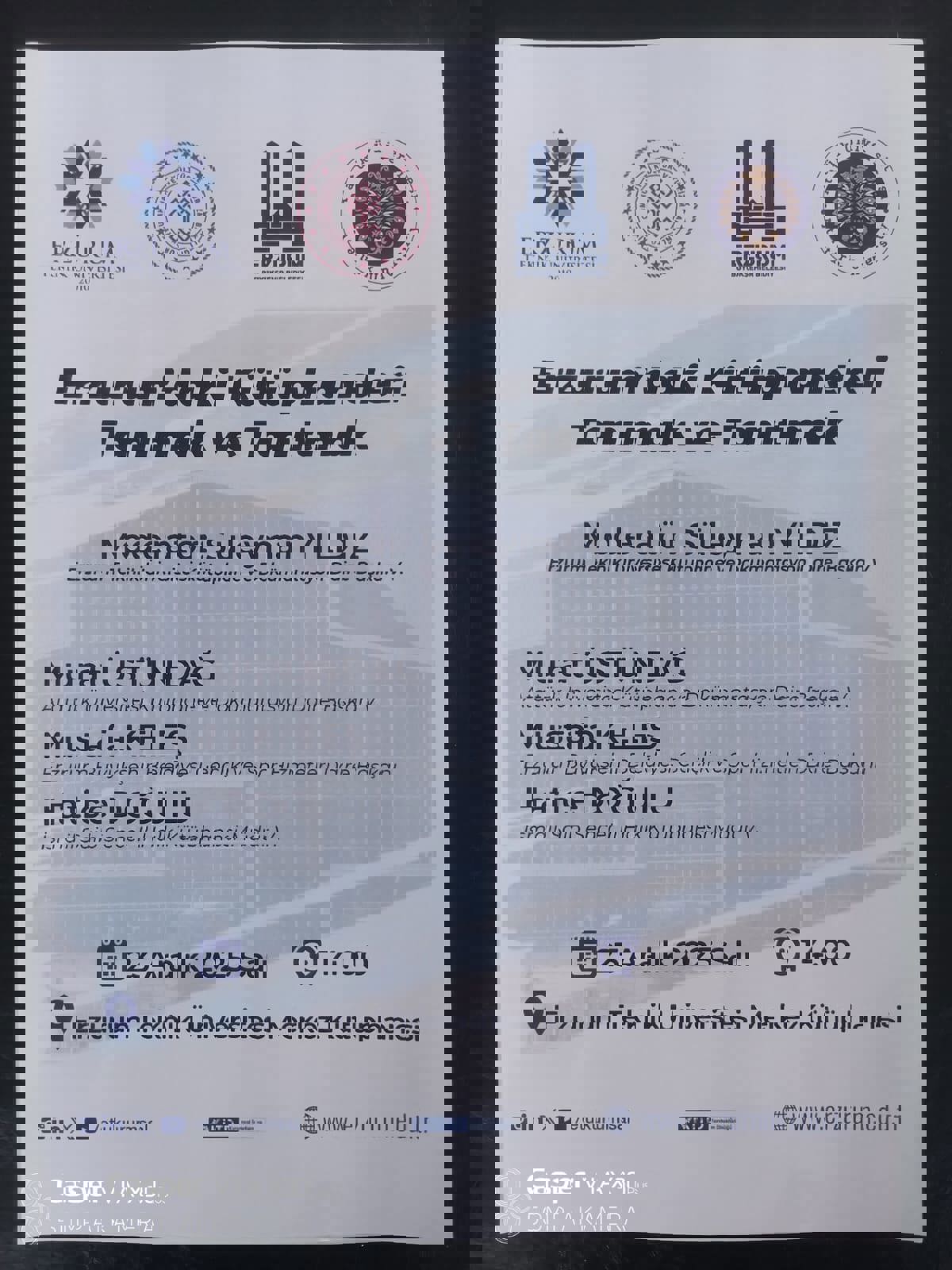 23.12.2025 Tarihi saat 14:00'da Merkez Kütüphane binasında Erzurum'daki Kütüphaneleri Tanımak ve Tanıtmak söyleşisi yapılacaktır. Söyleşimize herkes davetlidir.