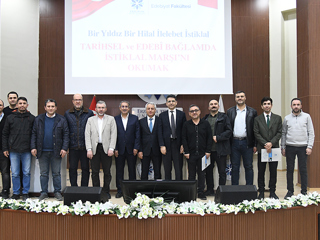 The panel, which began with a speech by Prof. Dr. Ugur Akbulut, Dean of the Faculty of Letters, at the Prof. Dr. Muammer Yaylalı Conference Hall, featured Prof. Dr. Murat Kacıroglu, Faculty of Letters, Department of Turkish Language and Literature, evaluating the National Anthem and Mehmet Akif Ersoy from a literary perspective, while Assoc. Prof. Dr. Mehmet Gokhan Polatoglu, History Department, spoke about the historical background during the period when the National Anthem was adopted. Prof. Dr. Murat Kucukugurlu, History Department, provided information to the audience about the events that took place during the liberation of Erzurum from enemy occupation.