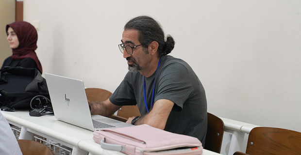 Following Assoc. Prof. Dr. Turanlı, Turkish Geometry Association President Prof. Dr. Murat Tosun took the podium, expressing his pleasure at the symposium being held in Erzurum. He said, “We are deeply honored to be holding the International Geometry Symposium in Erzurum, where the seeds of the national struggle were sown. I would like to thank Erzurum Technical University Rector Prof. Dr. Bülent Çakmak, as well as Sibel, our esteemed department head, and the faculty members. Sibel suggested organizing this year's congress in memory of her own teacher, Prof. Dr. Arif Salimov. There is a beautiful saying from Rumi: ‘He who is disloyal cannot be disloyal to God.’” I also thank you for keeping the feeling of loyalty alive through this symposium, rather than just a district name. The first geometry conference began 23 years ago at Fırat University. Since then, despite the challenges, it has continued. Although we had to take a two-year break due to reasons such as the pandemic and earthquake, we are gathered here today. Hopefully, we will reach many more 20 years together with the dedicated efforts of our young colleagues. I would like to take this opportunity to thank everyone who contributed to the symposium and offer my love and respect.