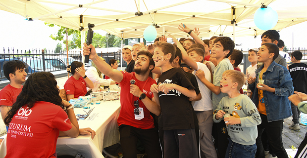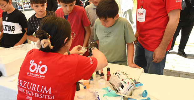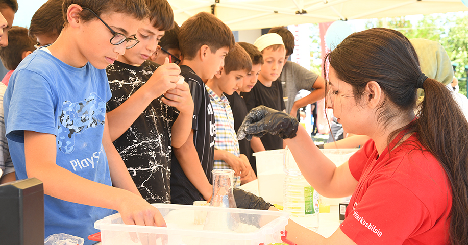 Etkinliğin en renkli bölümünü ise minikler oluşturdu. Çocuklar, MUCİTPARK tarafından kurulan bilim atölyelerinde deneyler yaparak bilime dokundu, keşfetmenin ve soru sormanın keyfini yaşadı.
