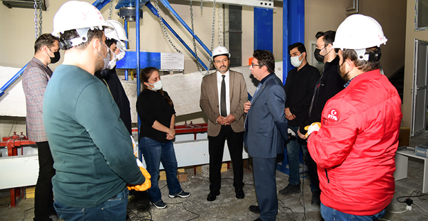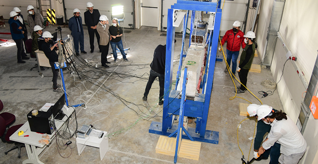 Erzurum Teknik Üniversitesi (ETÜ) bünyesinde gerçekleştirilen ve TÜBİTAK tarafından desteklenen “Soğuk Havalarda Dökülmüş Betonarme Kirişlerin Eğilme Etkisi Altındaki Davranışların Deneysel Olarak İncelenmesi” başlıklı projede test süreci başladı. Yapılan çalışmaları yerinde inceleyen ETÜ Rektörü Prof. Dr. Bülent Çakmak sürece dair proje ekibinden bilgi aldı.
