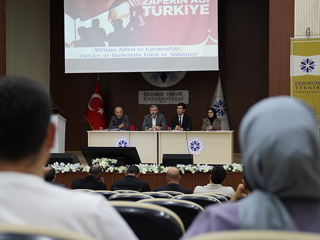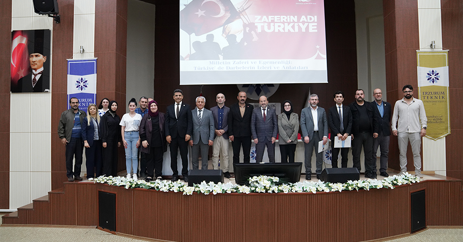 Erzurum Teknik Üniversitesi’nde (ETÜ) 15 Temmuz Demokrasi ve Milli Birlik Günü kapsamında “Milletin Zaferi ve Egemenliği: Türkiye'de Darbelerin İzleri ve Anlatıları” başlıklı bir panel düzenlendi.