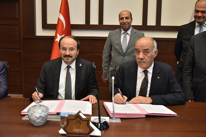 Erzurum Technical University Rector Prof. Dr. Bülent Çakmak, ETSO Chairman Lütfü Yücelik, ETU Vice Rector Prof. Dr. Birol Soysal, ETU Technology Transfer Office Manager Assoc.Prof. Dr. Ahmet Dumlu and ETSO Board Members attended to the signing ceremony in ETU on 24.09.2019.