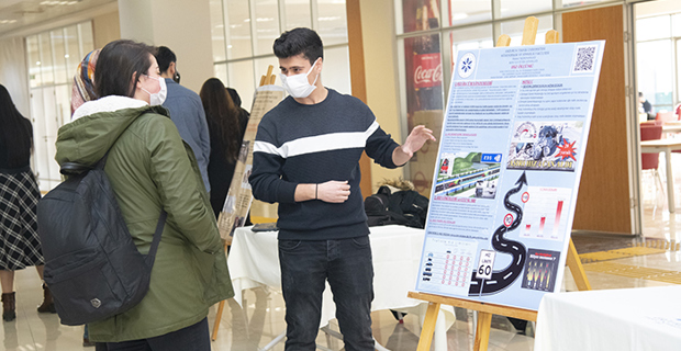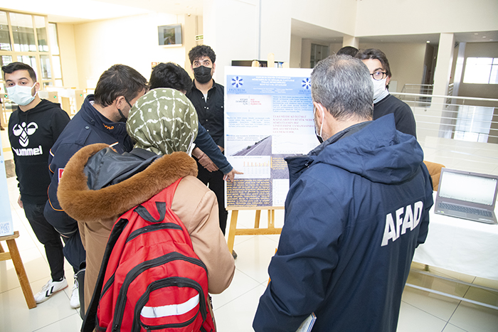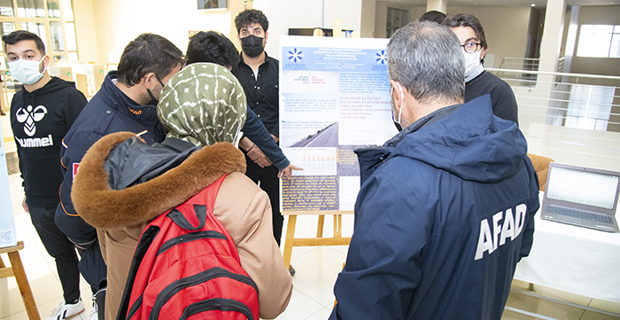 Mühendislik ve Mimarlık Fakültesi Fuaye Alanında düzenlenen sergide öğrenciler tarafından trafikte yol güvenliği, hız ölçümü, cep telefonu ve çocuk koltuğu kullanımı gibi konular üzerine 1 dönem boyunca yapılan araştırmalar sonucunda elde edilen bulgular hazırlanan posterlerle sergilendi.
