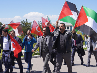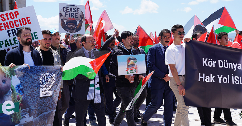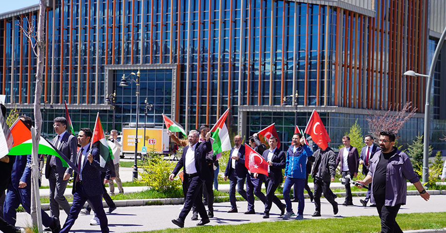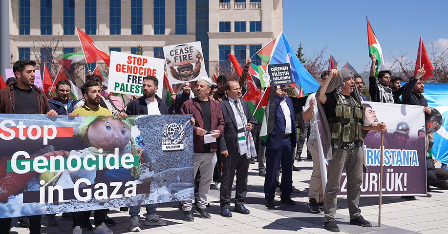 Erzurum Teknik Üniversitesi’nde (ETÜ) İsrail'in Gazze'ye yönelik süregelen saldırılarını protesto etmek ve Çin’in Doğu Türkistan’da Uygur Türklerine uyguladığı baskı politikalarına dikkat çekmek amacıyla Genç İnsan Hak ve Hürriyetleri (İHH) İnsani Yardım Derneği öncülüğünde yürüyüş gerçekleştirildi.