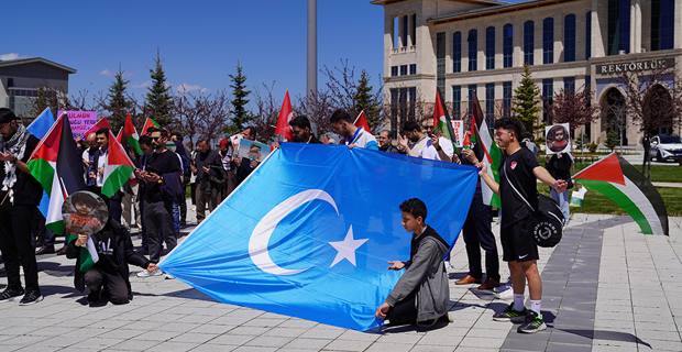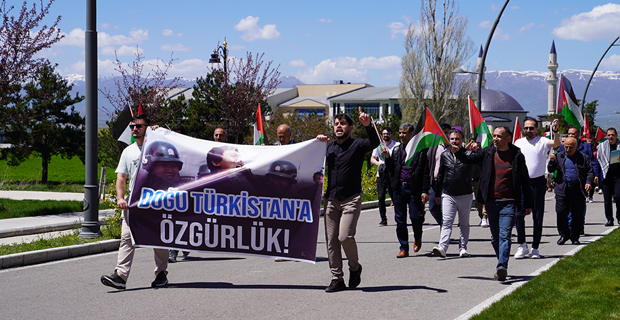 Erzurum Teknik Üniversitesi’nde (ETÜ) İsrail'in Gazze'ye yönelik süregelen saldırılarını protesto etmek ve Çin’in Doğu Türkistan’da Uygur Türklerine uyguladığı baskı politikalarına dikkat çekmek amacıyla Genç İnsan Hak ve Hürriyetleri (İHH) İnsani Yardım Derneği öncülüğünde yürüyüş gerçekleştirildi.