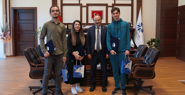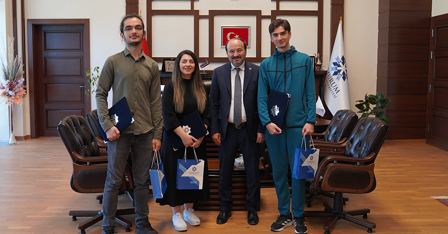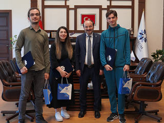 Erzurum Teknik Üniversitesi Rektörü Prof. Dr. Bülent Çakmak, Huawei ICT Competition 2023-2024 Küresel Finalinde başarı elde eden ekibi ve danışman hocalarını makamında kabul ederek tebrik etti. Prof. Dr. Çakmak, ekip üyelerine ve danışman hocalarına başarılarından ötürü teşekkür belgeleri ve plaketler takdim etti.