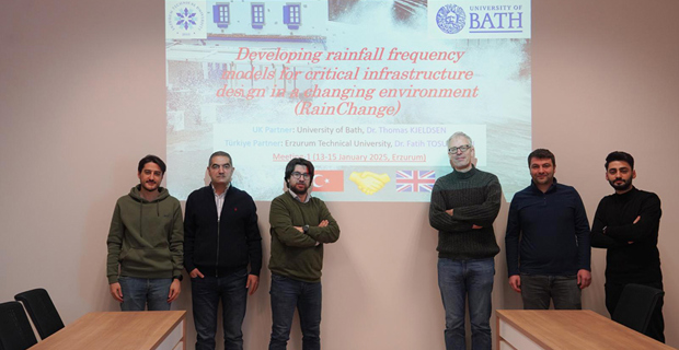 The first progress meeting of the project titled “Developing rainfall frequency models for critical infrastructure design in a changing environment RainChange”, led by Prof. Dr. Fatih Tosunoglu from Erzurum Technical University (ETU) Faculty of Engineering and Architecture, Department of Civil Engineering, and Dr. Thomas Kjeldsen from the University of Bath’s Department of Civil Engineering in the United Kingdom, was held at ETU.