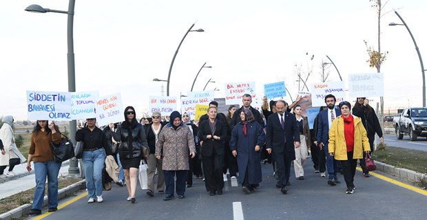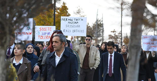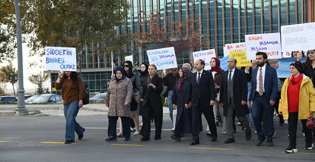 Following the death of Nermin Tirit in a heinous attack, an awareness walk was held under the leadership of Erzurum Technical University (ETU) Women and Family Studies Application and Research Center (EKAUM) to draw attention to violence against women.