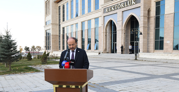 Speaking in the Rectorate Square, Çakmak emphasized that violence against women is a fundamental social problem, saying, "We are gathered here today after a great loss that has left a deep wound in the heart of our university and our city, a loss that has shaken us all. Nermin Tirit, a valued employee of our university, lost her life in an armed attack in front of her home on the morning of November 3, 2025. This tragic event has caused great sorrow and grief both within our university community and throughout society. No justification can be an excuse for depriving a woman of her right to life. As Erzurum Technical University, we firmly believe in the sanctity of human life and the inviolability of fundamental rights. We unwaveringly apply the principle of absolute tolerance to all forms of violence against women, rejecting and condemning in the strongest possible terms all forms of violence, whether physical, psychological, economic, or digital."