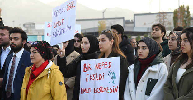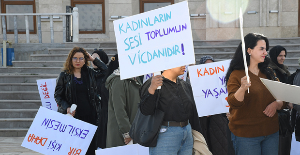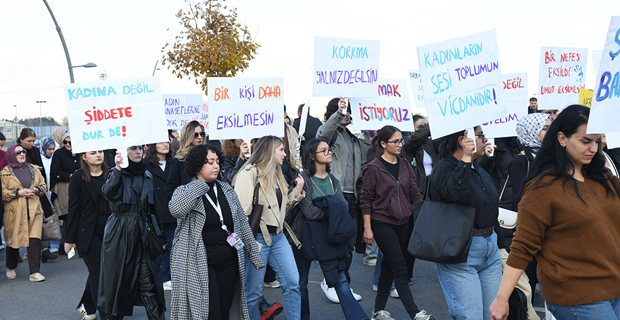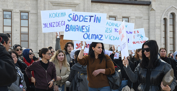 Following Friday prayers, a silent march was held from the Gelin Paşa Mosque on the ETU campus to Rectorate Square. Participants carried signs and banners to protest violence against women and raise a message of awareness.