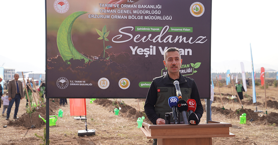 Programda konuşan Vali Mustafa Çiftçi, Erzurum’un yaklaşık iki buçuk milyon hektarlık yüzölçümüne sahip olduğunu belirterek bu alanın yüzde 60’ının meralardan, 480 bin hektarının tarım arazilerinden ve yaklaşık 290–300 bin hektarlık bölümünün ise ormanlık alanlardan oluştuğunu ifade etti. İlin yalnızca yüzde 10–12 oranında ormanlık alana sahip olduğunu hatırlatan Çiftçi, bu oranı artırmanın ortak bir sorumluluk olduğunun altını çizdi. Millî Eğitim Bakanlığının yeni Maarif Modeli ile “yeşil vatan, mavi vatan, gök vatan” kavramlarının eğitim müfredatına girdiğini aktaran Çiftçi, bu yaklaşımın genç nesillerde vatan bilincini güçlendirdiğini söyledi. Geçtiğimiz hafta Aşkale’de gerçekleştirilen 32 bin 500 fidan dikim etkinliğini hatırlatan Çiftçi, Tarım ve Orman Bakanlığının Kızılay ile yürüttüğü “Hayata Kan, Ormana Can” protokolü kapsamında bağışlanan her kan için üç fidan dikildiğini, hızlı tren yolcuları ve hastalar adına da fidan dikiminin sürdüğünü belirtti. Bu toprakların miras değil, emanet olduğuna dikkat çeken Vali Çiftçi, “Emanete sahip çıkmak ve onu daha zengin bir şekilde gelecek nesillere teslim etmek hepimizin sorumluluğudur” diye konuştu.
