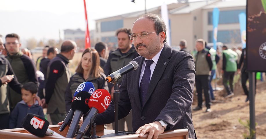 Ağaç dikmenin bir çevre faaliyetinden öte, geleceğe bırakılan en değerli miraslardan biri olduğuna dikkat çeken Rektör Çakmak ise: “Ağaç dikmek, geleceğe bıraktığımız en anlamlı emanetlerden biridir. İnsanoğlu kimi zaman doğayı tahrip eden bir varlık olabiliyor; ancak aynı insan, toprağa bir fidan bıraktığında doğayı onaran, güzelleştiren ve yaşatan bir güç hâline geliyor. Bugün kampüsümüzde yaklaşık 3.000 fidanı toprakla buluşturuyoruz. 11 Kasım saat 11.11’de ülkemizin dört bir yanında milyonlarca fidanın aynı anda dikilecek olması gerçekten heyecan verici. Peygamber Efendimiz ‘Kıyametin kopacağını bilseniz bile elinizdeki fidanı dikiniz.’ buyuruyor. Bu anlayış, umudun ve üretmenin hiçbir şart altında ertelenmemesi gerektiğini gösteriyor. Bugün diktiğimiz her fidan; doğayla kurduğumuz bağın, geleceğe duyduğumuz inancın ve yaşama olan saygımızın sembolüdür. Bu anlamlı etkinliğe katkı veren herkese teşekkürlerimi sunuyorum” ifadelerini kullandı.