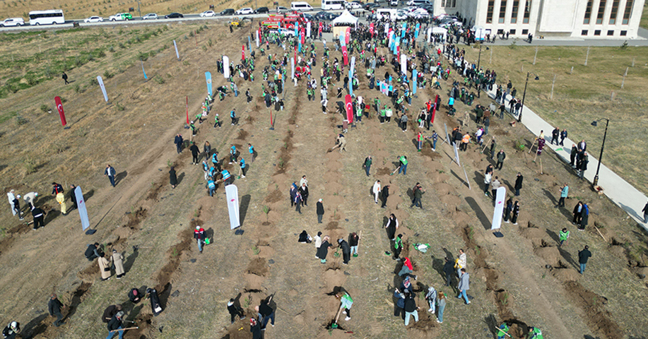 Doğal yaşamı koruma bilincini güçlendirmek, erozyonla mücadeleye katkı sağlamak, biyolojik çeşitliliği artırmak ve ülkemizin yeşil alan varlığını çoğaltmak amacıyla düzenlenen etkinliğe ETÜ Rektörü Prof. Dr. Bülent Çakmak ve Erzurum Orman Bölge Müdürü Serkan Karakurt’un yanı sıra Erzurum Valisi Mustafa Çiftçi, Erzurum Büyükşehir Belediyesi Başkan Vekili Mehmet Akarsu ile şehrin idari, mülki ve askeri erkanı ve çok sayıda ETÜ personeli ile öğrenci katıldı.
