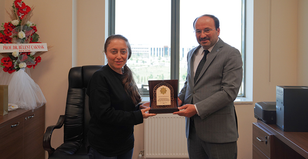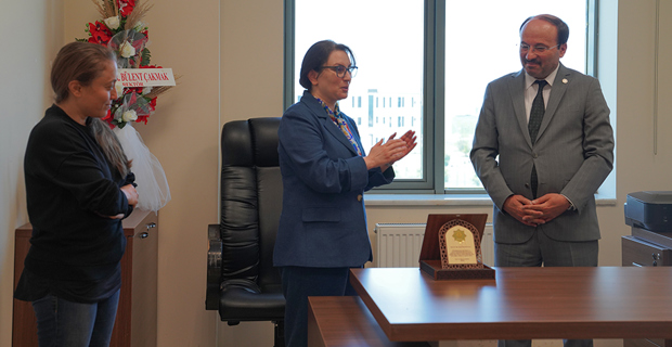A handover ceremony was held at the Corporate Communication Directorate of Erzurum Technical University (ETU). The ceremony, attended by ETU Rector Prof. Dr. Bulent Cakmak, also included Vice Rector Prof. Dr. Ali Fatih Yetim and Secretary General Assoc. Dr. Ahmet Dumlu. During the ceremony, Assistant Professor Dr. Dilek Okuyucu, a faculty member of the Faculty of Engineering and Architecture, handed over the Corporate Communication Directorate duties to Dr. Senior Lecturer Pune Karimi.