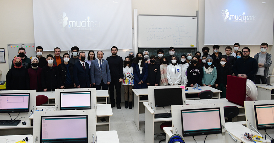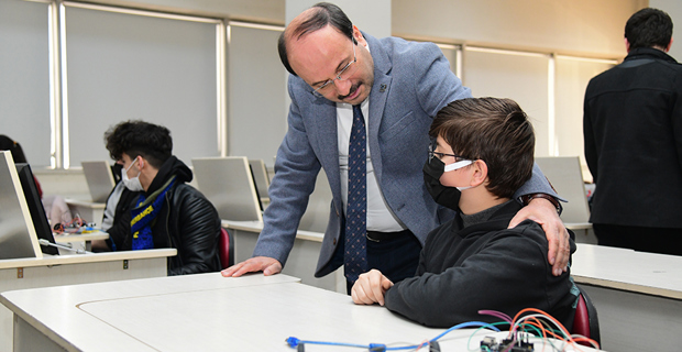 Öğrencilerin bilimsel bakış açısını geliştirmek ve sorunlara çözüm üretebilme kabiliyetlerini desteklemek amacıyla MucitPark Atölyelerinde eğitim alan öğrencileri ziyaret eden ETÜ Rektörü Prof. Dr. Bülent Çakmak, gençlerle yakından ilgilenerek geliştirdikleri cihazlar hakkında bilgi aldı. Öğrencilerin zihinlerinde tasarladığı ürünleri bu kısa süre zarfında somut cihazlara dönüştürebilmesinin taktire değer olduğunu ifade eden Prof. Dr. Bülent Çakmak, “Sizler bizim geleceğimizsiniz, bir hafta boyunca atölyelerimizde aldığınız eğitimler sonucunda ortaya koyduğunuz ürünler, gençlerimize fırsat verildiğinde neler yapabileceğinin en güzel örneklerinden biri. İnanıyorum ki hepiniz gelecekte üniversitelerde hayal ettiğiniz bölümlerde okuyacak ve meslek sahibi olacaksınız. Sizlerden ricam bugün olduğu gibi gelecekte de başarabileceğinize dair inancınız her zaman tam olsun” şeklinde konuştu.