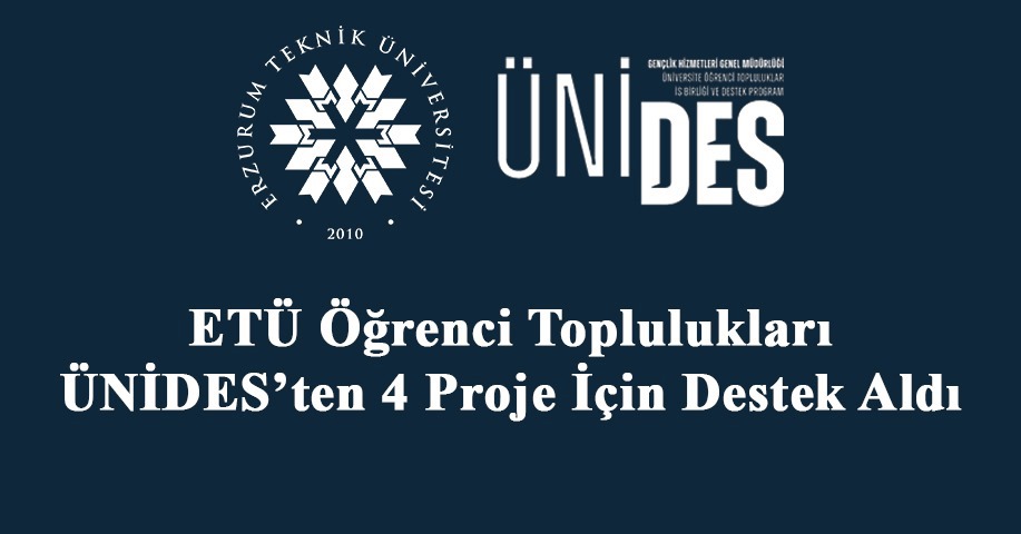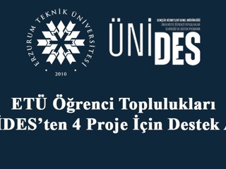 Erzurum Teknik Üniversitesi (ETÜ) öğrenci toplulukları tarafından hazırlanan 4 proje, Üniversite Öğrenci Toplulukları İş Birliği ve Destek Programı (ÜNİDES) 5. Dönem kapsamında destek almaya hak kazandı.
