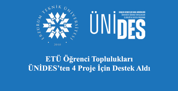 Four projects prepared by student groups Erzurum Technical University (ETU) , have been granted support within the scope of the University Student Groups Cooperation and Support Program (UNIDES) 5th Term.