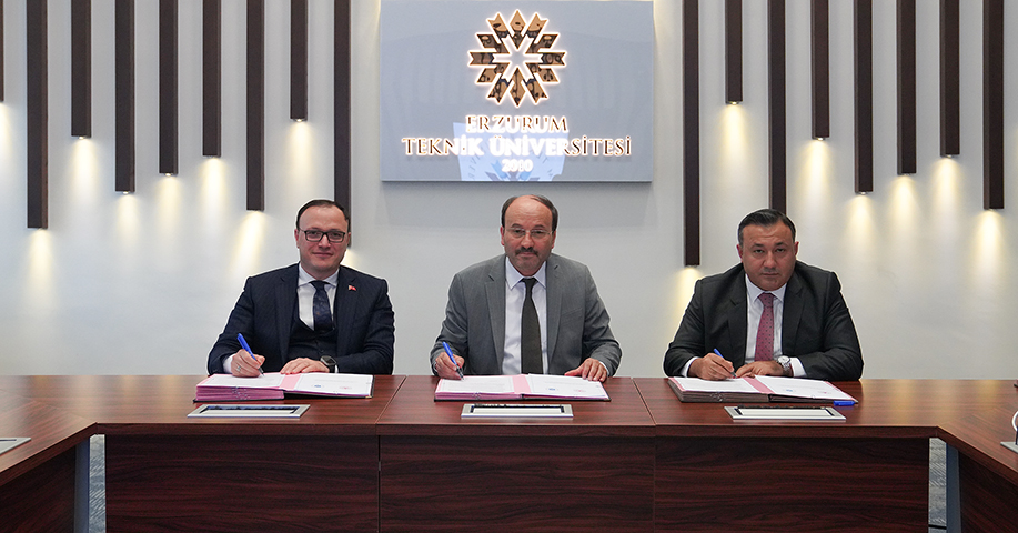 ETU Rector Prof. Dr. Bulent Cakmak, Yakutiye District Governor Tuncay Kaldırım and Palandoken District Governor Yusuf Durani Dinc attended the signing ceremony held in the Rectorate Meeting Hall.