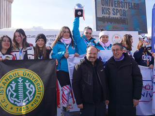 ETÜ Kayak Alp Disiplini Kadın Takımı sporcuları Sıla Kara, Zerda Tımarlı, Hilal Çelik ve Aliye Zeynep Bingül ise Özyeğin Üniversitesi’ni geride bırakarak birincilik kupasını ETÜ’ye kazandırdı.