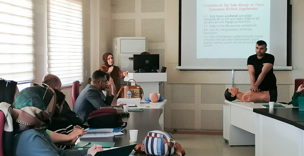 The program was organized to increase awareness levels of staff working at ETU regarding work accidents and to reduce such accidents. In this program conducted by experts from the Provincial Health Directorate, academic and administrative staff were given 16-hour first aid training. Following the two-day training, staff members took an exam, and those who passed were presented with certificates.