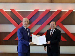 Cumhurbaşkanı Recep Tayyip Erdoğan’ın tensipleriyle ETÜ Rektörlüğü görevine yeniden atanan Prof. Dr. Bülent Çakmak’a Rektörlük Mazbatası YÖK Başkanı Prof. Dr. Erol Özvar tarafından verildi.