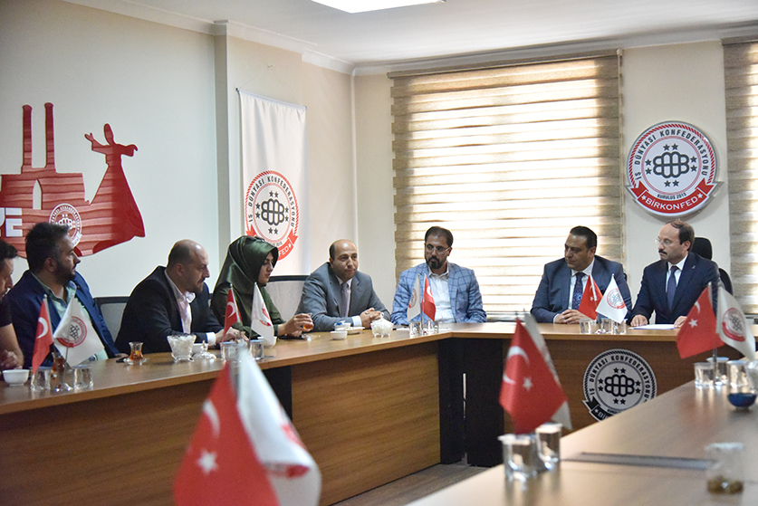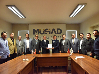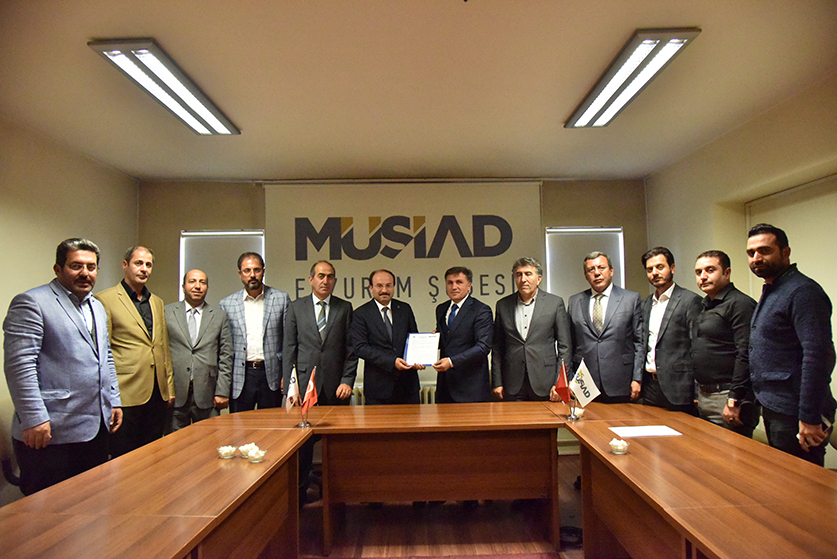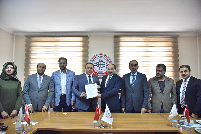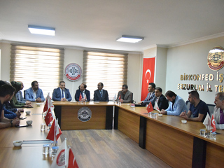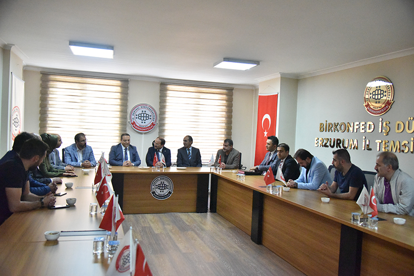 Firstly, ETU Rector Prof. Dr. Bülent Çakmak and accompanying delegation met with Zeki GÖZELER, Erzurum Representative of Unifying Business Confederation (BİRKONFED) and then met with Fuat DEMİR, Chairman of the Erzurum Branch of the Independent Industrialists' Businessmen's Association and the members of the Board of Directors and signed the industrial cooperation protocols.