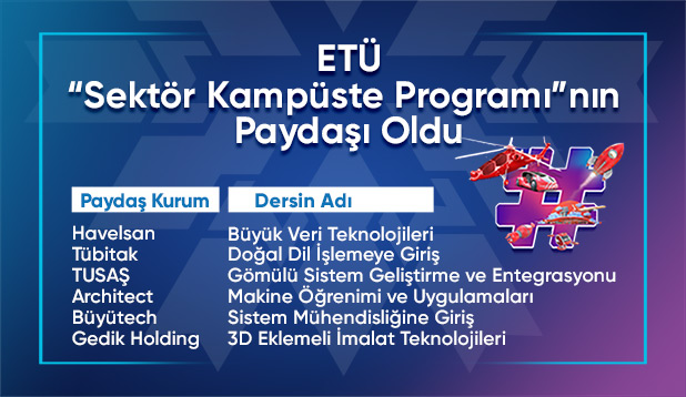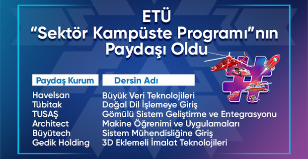 Erzurum Teknik Üniversitesi (ETÜ), Sanayi ve Teknoloji Bakanlığı öncülüğünde hayata geçirilen ve Milli Teknoloji Hamlesi’ne yön verecek gençlerin yetiştirilmesine katkı sağlamak amacıyla kurulan dijital öğrenme platformu Sektör Kampüste Programı’nın paydaşı oldu.