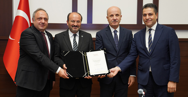 The meeting concluded with YÖK President Özvar presenting the certificate of ETÜ, which was selected as the university specializing in "Additive Manufacturing" within the scope of the "Specializing Universities" program, to Rector Çakmak.