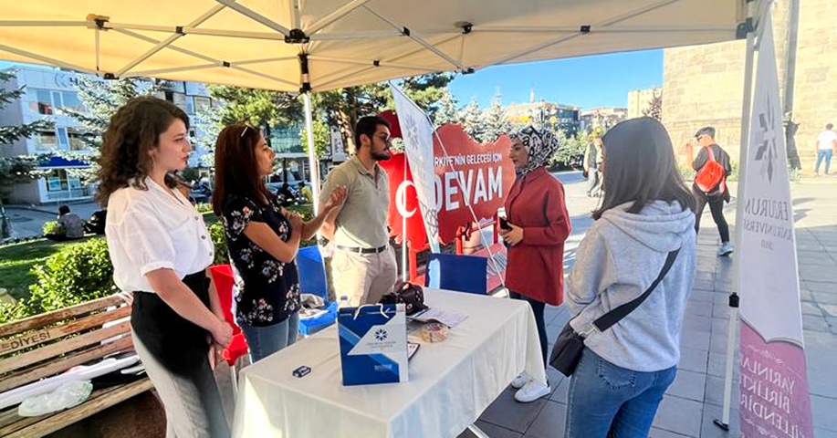 Adaylarının üniversite hakkında birinci elden bilgi sahibi olmaları için çevre illerde organize edilen Tanıtım Günleri etkinliklerine de katılan ETÜ; bu kapsamda Iğdır, Bitlis ve Van’da da stantlar açarak öğrenci ve aileleriyle buluştu. Ziyaretçilerine hem Erzurum’un tarihi, kültürel ve sosyal yaşamından bilgiler aktaran hem de üniversitenin akademik ve bilimsel faaliyetlerinden bahseden stant görevlileri; bölümlerin taban puanları, fiziki imkânları ve ders müfredatları hakkında bilgi paylaşımında bulundu. ETÜ’den mezun olan öğrencilerin, donanımlı bireyler olarak ülkenin birçok noktasında kolaylıkla iş bulabildiklerini aktaran uzmanlar, tercih yapacak öğrencileri ETÜ ayrıcalığı yaşamaya davet etti.
